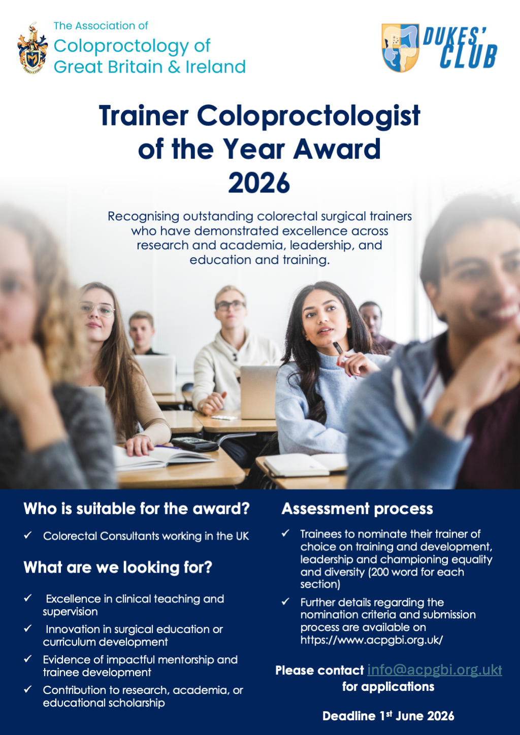 ACPGBI and The Dukes’ Club are delighted to invite nominations of exemplary trainers in coloproctology