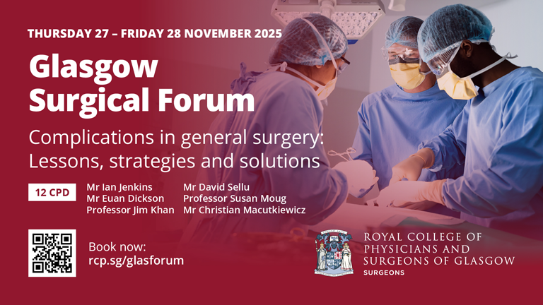 The Glasgow Surgical Forum returns this year with a focus on one of the most critical aspects of surgical practice: managing complications. Under the theme 'Complications in general surgery: lessons, strategies, and solutions', the meeting will bring together surgeons from across the UK and beyond to engage in open, practical, and forward-thinking discussions.
