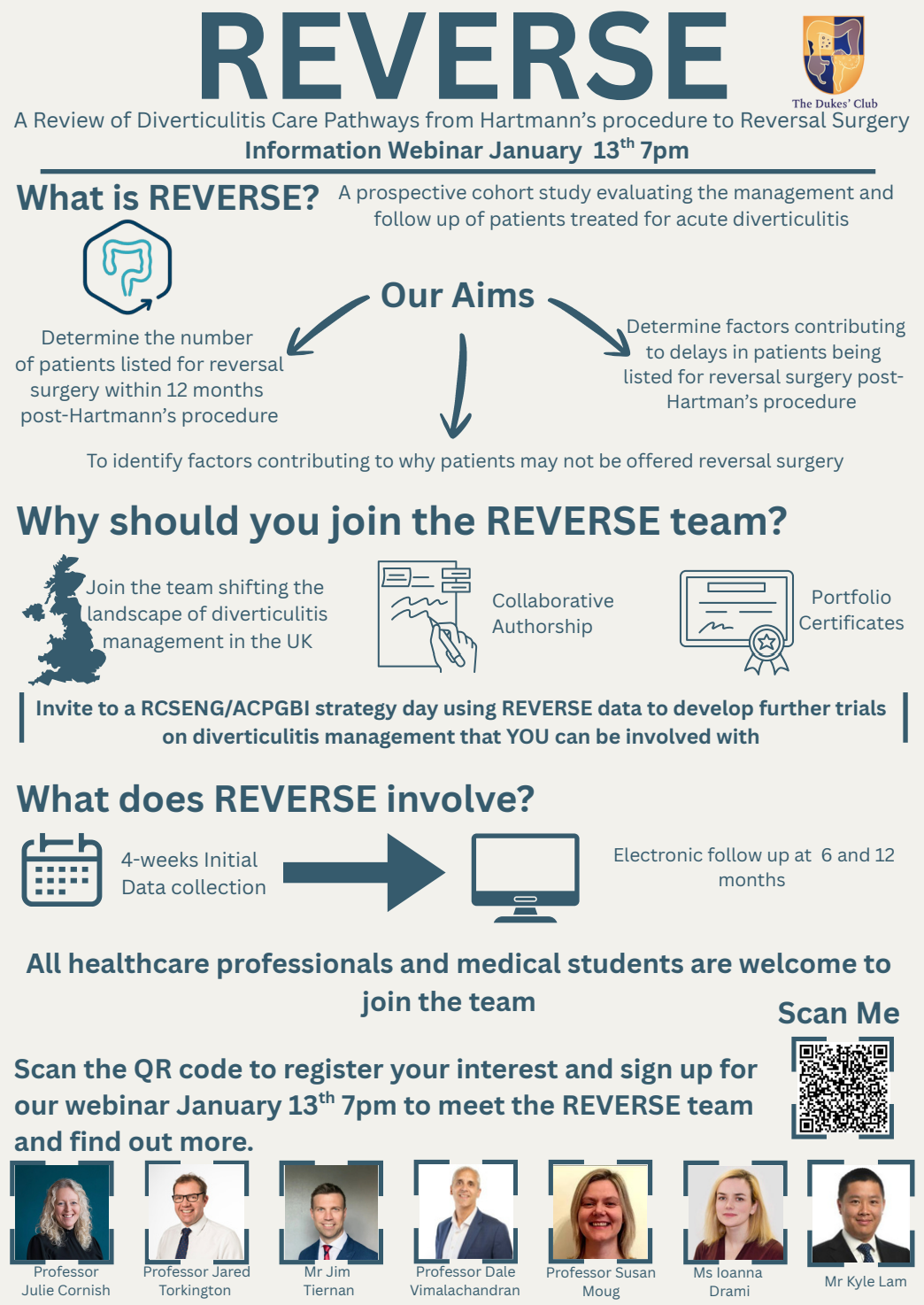 Help reshape diverticulitis care in the UK. REVERSE is a prospective cohort study exploring what happens to patients after Hartmann’s procedure — and why many are not offered reversal surgery.