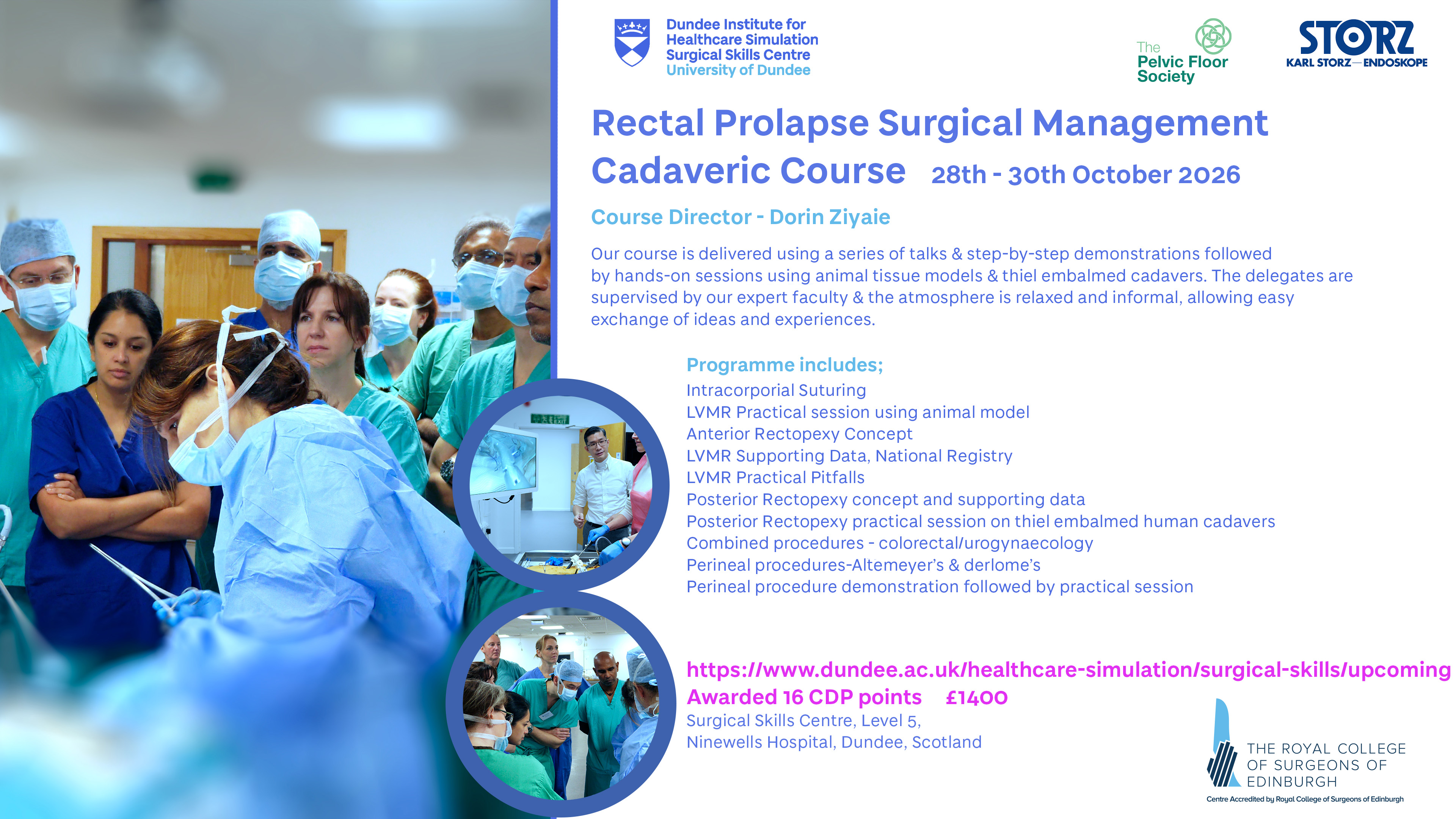 The Rectal Prolapse Surgical Management Cadaveric Course is designed for hands-on practice on Thiel embalmed cadavers.